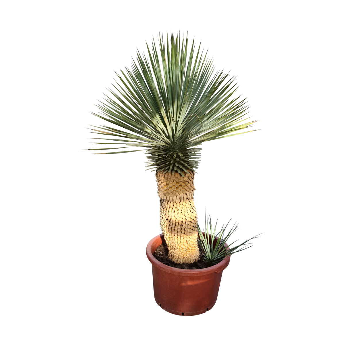 Deze prachtige Hybride is een must-have voor iedere Yucca liefhebber en verzamelaar. De plant heeft veel kenmerken van de Yucca thompsoniana waaronder de bladkleur en de kleine compacte kop met stijve bladeren. De winterhardheid schatten we in op zeker 16 graden onder nul.